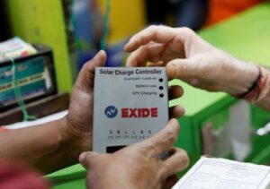 A customer looks at an Exide solar charge controller for purchase at a shop inside a wholesale electronics market in Kolkata, India, March 19, 2024. REUTERS/Sahiba Chawdhary