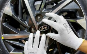 An employee works at a subsidiary of Astana Motors company – Hyundai Trans Kazakhstan plant producing Hyundai passenger cars in Almaty, Kazakhstan June 24, 2024. REUTERS/Pavel Mikheyev