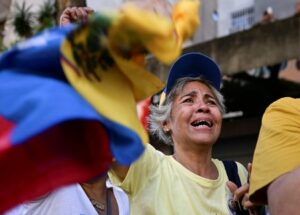 Una mujer llora mientras ve a la líder de la oposición venezolana María Corina Machado hablar en una protesta antes de la toma de posesión el viernes del presidente Nicolás Maduro para su tercer mandato, en Caracas, Venezuela 9 de enero de 2025. REUTERS/Gaby Oraa
