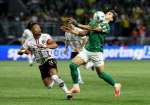 Fútbol – Copa Libertadores – Semifinal – Partido de vuelta – Palmeiras vs LDU Quito – Allianz Parque, São Paulo, Brasil – 30 de octubre de 2025 – Ramón Sosa, del Palmeiras, en acción con José Quintero, de LDU Quito. REUTERS/Amanda Perobelli
