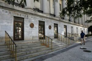 FOTO DE ARCHIVO: Señalización en la sede del Departamento del Tesoro de Estados Unidos en Washington, D.C., Estados Unidos, 29 de agosto de 2020. REUTERS/Andrew Kelly/Archivo