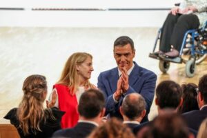 Spain’s Prime Minister Pedro Sanchez applauds as he attends a tribute to victims of the Spanish Civil War and Francisco Franco era, nearly 50 years after the former Spanish dictator’s death, at Spain’s National Music Auditorium, in Madrid, Spain, October 31, 2025. REUTERS/Violeta Santos Moura