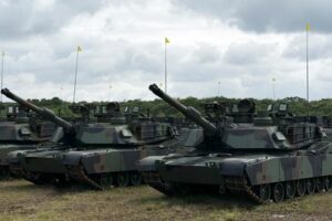 M1A2T Abrams tanks on display at a commissioning ceremony for Taiwan’s first battalion of the tanks, at the Hukou military base in Hsinchu, Taiwan October 31, 2025. REUTERS/Yi-Chin Lee