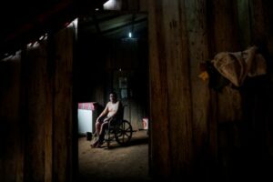 Marquinho Saw Munduruku en silla de ruedas posa para una foto durante una misión de investigadores del instituto brasileño de salud pública Fiocruz para investigar los trastornos de salud entre los indígenas Munduruku que están potencialmente relacionados con la contaminación por mercurio causada por la minería ilegal de oro, en la aldea Sai Cinza, en el municipio de Jacareacanga, estado de Pará, Brasil 21 de febrero de 2025. REUTERS/Adriano Machado