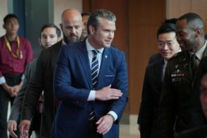 U.S. Secretary of Defense Pete Hegseth, walks to attend a ministerial lunch at the Association of Southeast Asian Nations (ASEAN) Defense Ministers’ Meeting in Kuala Lumpur, Malaysia, Saturday, Nov. 1, 2025. Dita Alangkara/Pool via REUTERS