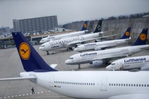 Lufthansa airplanes are parked on the tarmac during a strike November 1, 2025 November 1, 2025 Lufthansa airplanes are parked on the tarmac at Frankfurt airport, Germany, November 13, 2015. REUTERS/Ralph Orlowski
