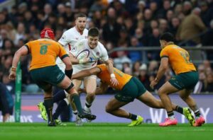 Rugby Union – Autumn Internationals – England v Australia – Allianz Stadium, Twickenham, London, Britain – November 1, 2025 England’s Tommy Freeman in action with Australia’s Joseph Aukuso Suaalii Action Images via Reuters/Matthew Childs
