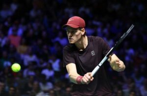 El tenista italiano Jannik Sinner en acción durante su partido de semifinales contra el alemán Alexander Zverev por el ATP Masters 1000 de París en el Paris La Defense Arena de Nanterre, Francia. 1 de noviembre de 2025 REUTERS/Sarah Meyssonnier