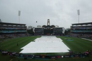 Cricket – ICC Women’s World Cup – Final – India v South Africa – DY Patil Stadium, Navi Mumbai, India – November 2, 2025 General view of covers on the pitch due to rain REUTERS/Francis Mascarenhas