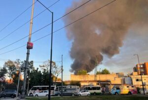 FOTO DE ARCHIVO: El humo de un incendio se eleva fuera de un almacén de zapatos cerca del Zócalo en Ciudad de México, México 16 de noviembre 2023. REUTERS/Alexandre Meneghini