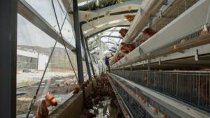 Osbourne Brumley, granjero de huevos, en sus instalaciones de producción de huevos “a prueba de huracanes”, destruidas por el huracán Melissa, en New Holland, St. Elizabeth Parish, Jamaica, 1 de noviembre de 2025. REUTERS/Maria Alejandra Cardona