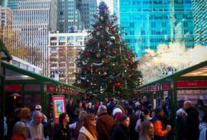 FOTO DE ARCHIVO: Compradores navideños abarrotan el Bryant Park Winter Village bajo un gran árbol de Navidad en el centro de Manhattan, en Nueva York, Estados Unidos, el 15 de diciembre de 2023. REUTERS/Mike Segar/Archivo