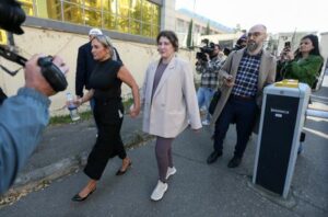 Bella Culley, a British teenager arrested on drug smuggling charges in Georgia, walks together with her mother Lyanne Kennedy following a hearing of the city court that released her from custody in Tbilisi, Georgia, November 3, 2025. REUTERS/Irakli Gedenidze