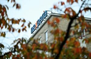 The logo of Chinese-owned semiconductor company Nexperia is displayed at the chipmaker’s German facility in Hamburg, Germany, October 23, 2025. REUTERS/Jonas Walzberg