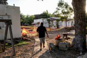 Avishay Edri, 41, walks on a path near the home he is returning to after he was evacuated following the October 7, 2023, attack by Hamas, in Kibbutz Nahal Oz in southern Israel, October 30, 2025. Hamas gunmen killed 15 people from Nahal Oz and took eight more hostage to Gaza on October 7, 2023. REUTERS/Ronen Zvulun