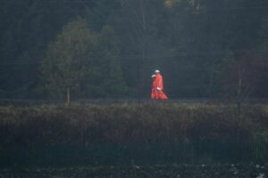 Rail workers walk along the track near the site of a train derailment near Shap in Cumbria, Britain, November 3, 2025. REUTERS/Phil Noble