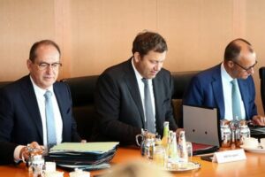 ARCHIV: Bundeskanzler Friedrich Merz, Vizekanzler und Finanzminister Lars Klingbeil und Innenminister Alexander Dobrindt bei einer Kabinettssitzung im Kanzleramt in Berlin, Deutschland, 10. September 2025. REUTERS/Liesa Johannssen