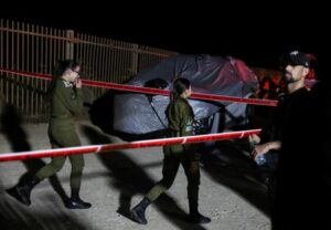 Israeli security forces gather after Israel’s military said that they were employing all means available to locate resigned Chief Military Advocate General, Major General Yifat Tomer-Yerushalmi, who resigned on Friday over a criminal inquiry into the leaking of a video that appeared to show soldiers abusing a Palestinian detainee arrested during the Gaza war, in Herzliya, Israel November 2, 2025. REUTERS/Nir Elias