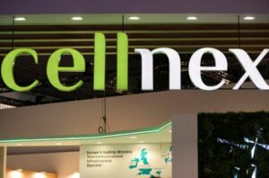FILE PHOTO: Spain’s telecom infrastructure company Cellnex’s logo is seen at the Mobile World Congress (MWC) in Barcelona, Spain February 27, 2023. REUTERS/Nacho Doce/File Photo