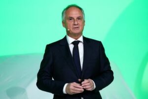 Fabrice Cambolive, Chief Growth Officer and CEO Renault Brand at Renault Group, delivers a speech during the media preview presentation of the new Renault Twingo E-Tech electric car in Ivry-sur-Seine near Paris, France, October 31, 2025. REUTERS/Gonzalo Fuentes