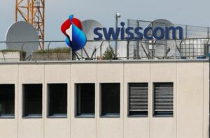 The logo of Swiss telecoms group Swisscom is seen at an office building, in Duebendorf, Switzerland May 26, 2020. REUTERS/Arnd Wiegmann