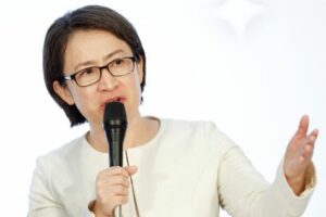 Hsiao Bi-khim, the ruling Democratic Progressive Party’s (DPP) vice presidential candidate, speaks during a press conference ahead of the presidential and parliamentary elections in Taipei, Taiwan January 9, 2024. REUTERS/Carlos Garcia Rawlins