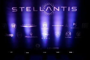 FILE PHOTO: The logo of Stellantis is seen next to the logos of other car brands during the Automotive Industry Day summit in Paris, France, November 4, 2025. REUTERS/Sarah Meyssonnier/File Photo