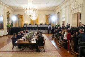 Members of the media cover U.S. President Donald Trump’s dinner with the leaders of the C5+1Central Asian countries of Kazakhstan, Kyrgyzstan, Tajikistan, Turkmenistan, and Uzbekistan, in the East Room of the White House in Washington, D.C., U.S., November 6, 2025. REUTERS/Nathan Howard