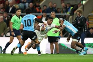 Rugby Union – Autumn Internationals – England v Fiji – Allianz Stadium, Twickenham, London, Britain – November 8, 2025 England’s Immanuel Feyi-Waboso scores a try Action Images via Reuters/Andrew Boyers