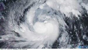 A satellite image shows Storm Fung-Wong, which has intensified into a typhoon, according to the Cooperative Institute for Research in the Atmosphere (CIRA), over the Philippine Sea on November 7, 2025, in this screengrab from video. CSU/CIRA & JMA/JAXA/Handout via REUTERS THIS IMAGE HAS BEEN SUPPLIED BY A THIRD PARTY. MANDATORY CREDIT. IMAGE ANNOTATION FROM SOURCE.