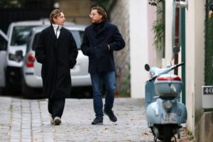Jean and Pierre Sarkozy, sons of former French President Nicolas Sarkozy, leave their father’s house, on the day Nicolas Sarkozy could be released from jail following a request at an hearing in a Paris court, weeks after he started a five-year sentence for conspiring to raise campaign funds from Libya, in Paris, France, November 10, 2025. REUTERS/Yves Herman