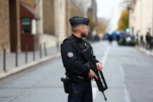 A gendarme stands guard outside Sante prison, after a Paris court granted former French President Nicolas Sarkozy an early release from jail, pending an appeal, weeks after he started a five-year sentence for conspiring to raise campaign funds from Libya, in Paris, France, November 10, 2025. REUTERS/Abdul Saboor