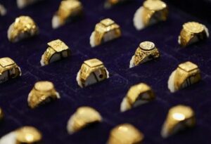 Gold rings are seen at a jewellery shop in the November 10, 2025 November 10, 2025 Gold rings are seen at a jewellery shop in the old quarters of Delhi, India, May 24, 2023. REUTERS/Anushree Fadnavis