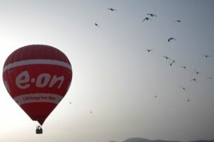 ARCHIV: Ein Heißluftballon mit dem Logo des deutschen Energiekonzerns E.ON fliegt am 21. Juli 2016 in der Morgendämmerung über Ronda in Südspanien. REUTERS/Jon Nazca/File Photo