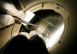 FILE PHOTO: Worker Solomon Conteh dissects a mosquito at Sanaria Inc. facility in Rockville, Maryland, October 26, 2007. REUTERS/Jim Young/File Photo