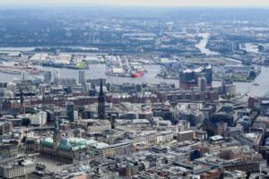 Aerial view of the Hamburg Townhall and the Philharmonic Hall