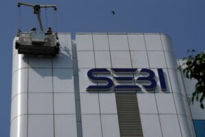 Workers clean the facade of Securities and Exchange Board of India (SEBI) headquarters in Mumbai, India, March 24, 2025. REUTERS/Hemanshi Kamani