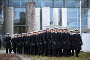 Soldaten marschieren vor einer feierlichen Vereidigungszeremonie zum 70-jährigen Bestehen der Bundeswehr vor dem Kanzleramt in Berlin, Deutschland, 12. November 2025. REUTERS/Annegret Hilse