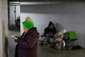 People take shelter inside an underground parking lot during Russian missile and drone strikes, amid Russia’s attack on Ukraine, in Kyiv, Ukraine November 14, 2025. REUTERS/Valentyn Ogirenko
