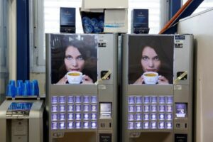 Blocked coffee machines stand inside a K.R. Pfiffner Group factory amid economic struggles exacerbated by U.S. tariffs on Swiss precision machinery in Utzensdorf, Switzerland, October 20, 2025, REUTERS/Stefan Wermuth