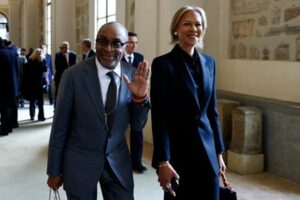 Spike Lee walks in the Galleria Lapidaria of the Apostolic Palace after meeting Pope Leo XIV during the audience with artists from the world of cinema at the Vatican, November 15, 2025. REUTERS/Matteo Minnella