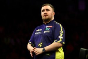 Darts – 2025 Premier League – Newcastle – Utilita Arena, Newcastle, Britain – March 27, 2025 Luke Littler reacts during his semi final match against Rob Cross REUTERS/Lee Smith