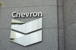 FOTO DE ARCHIVO: Un logotipo de Chevron en el edificio de Chevron en Houston, Texas, Estados Unidos. 19 de agosto 2025. REUTERS/Kaylee Greenlee/Archivo