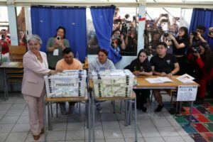 Jeannette Jara, candidata presidencial de la coalición de izquierda gobernante y miembro del Partido Comunista, vota en las elecciones presidenciales, en Santiago de Chile, el 16 de noviembre de 2025. REUTERS/Pablo Sanhueza