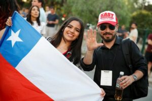 Simpatizantes de José Antonio Kast, candidato presidencial del ultraderechista Partido Republicano, reaccionan el día de las elecciones presidenciales, en Santiago de Chile el 16 de noviembre de 2025. REUTERS/Rodrigo Garrido