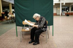 Una mujer vota durante las elecciones generales, en Santiago November 16, 2025 November 16, 2025 Una mujer vota durante las elecciones generales, en Santiago, Chile 16 de noviembre 2025. REUTERS/Juan González