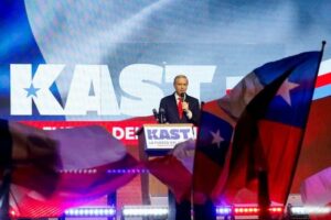 José Antonio Kast, candidato presidencial del Partido Republicano, se dirige a sus partidarios después de los primeros resultados durante las elecciones presidenciales, en Santiago, Chile, 16 de noviembre de 2025. REUTERS/Rodrigo Garrido