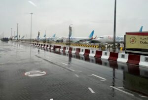 DATEI-FOTO: Blick aus dem Inneren eines Busses auf flydubai-Flugzeuge am Dubai International Airport, Dubai, Vereinigte Arabische Emirate, 17. November 2023. REUTERS/Alexander Cornwell/File Photo