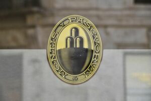 View of the logo of Monte dei Paschi di Siena (MPS), the oldest bank in the world, which faces massive layoffs as part of a planned corporate merger, in Siena, Italy, August 11, 2021. Picture taken August 11, 2021. REUTERS / Jennifer Lorenzini