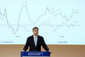 El comisario europeo de Economía, Valdis Dombrovskis, asiste a una rueda de prensa sobre las previsiones económicas de la Unión Europea, en Bruselas, Bélgica. 17 de noviembre de 2025. REUTERS/Yves Herman